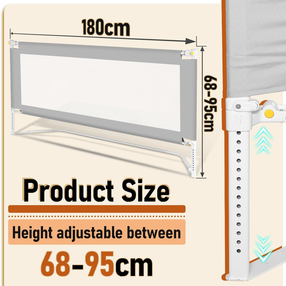 - Höhenverstellbar: Das Kinderbettgitter ist in 150/180/200 cm. Die beiden Schienenfüsse sind mit 20 Löchern zur flexiblen Höhenverstellung zwischen 68 cm und 95 cm ausgestattet, um sie an unterschiedliche Bettgrössen anzupassen und Ihnen die