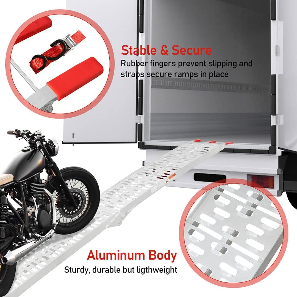 - ✅Praktisches Design: Mit ausgeklappten Abmessungen von 226 x 30,5 x 5,5 cm und einem Gewicht von nur 7,2 kg pro Schiene ist die Laderampe leicht und einfach zu transportieren. Dadurch gibt es praktisch keine Einschränkungen in der Anwendung.