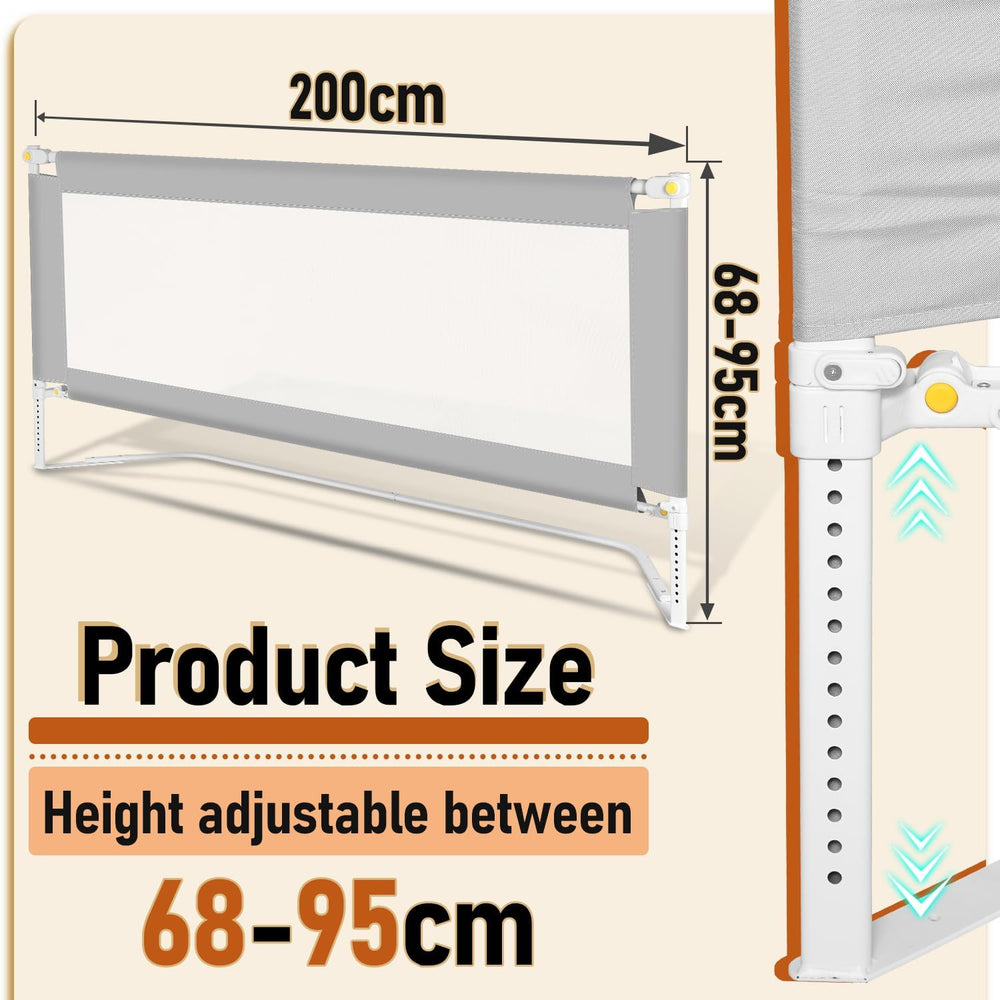 • Höhenverstellbar: Das Kinderbettgitter ist in 150/180/200 cm. Die beiden Schienenfüsse sind mit 20 Löchern zur flexiblen Höhenverstellung zwischen 68 cm und 95 cm ausgestattet, um sie an unterschiedliche Bettgrössen anzupassen und Ihnen die