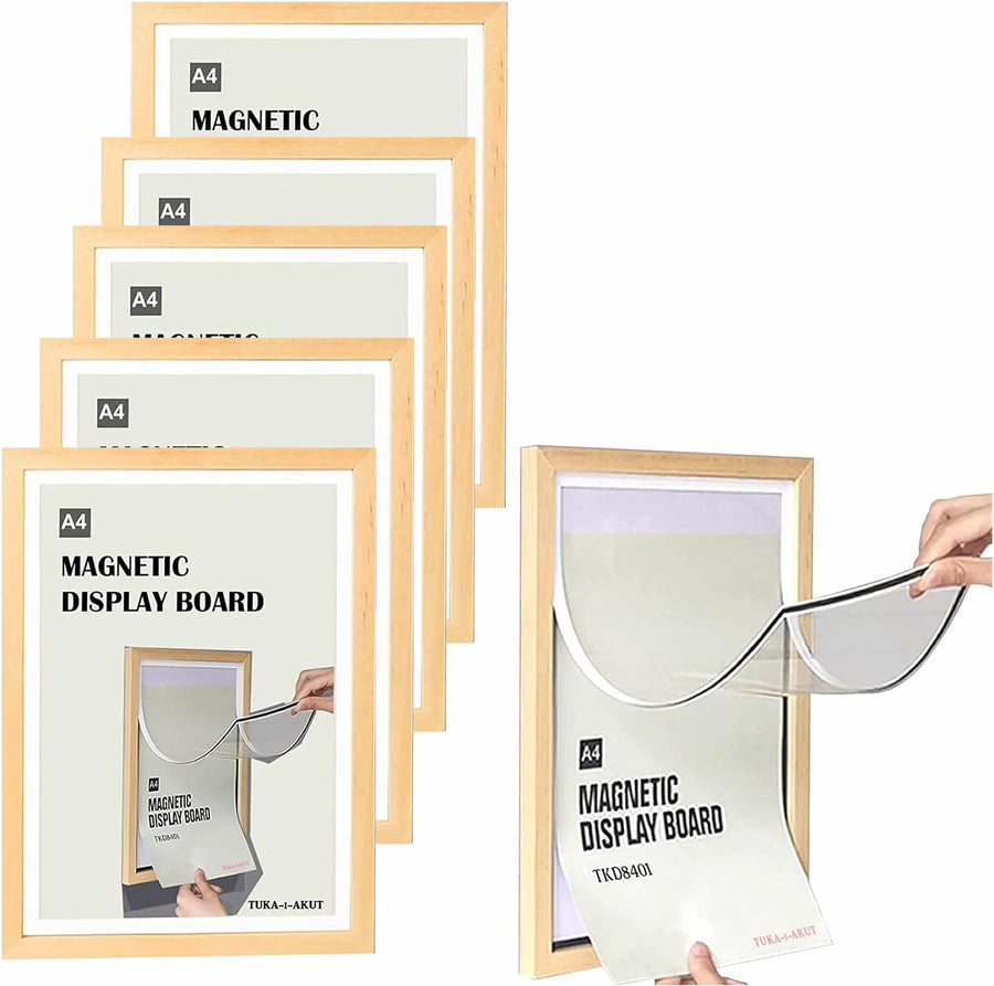- [ 6er Set ] DIN-A4 Holz Info-Rahmen mit Acryl Frontfolie und aufklappbarem Magnetrahmen, für professionelle flexible Präsentation und Schnelles Wechseln von Dokumenten, Aushängen, Kunst, Poster, Informationen, Werbung, Angeboten, Plakate, Zertifikate,