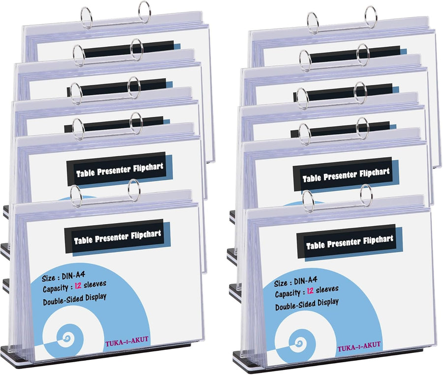 TUKA-i-AKUT 10er A4 Quer Tisch-Flipchart aus Acryl mit Basis, 12 Hüllen je T Form Desktop Flip Chart