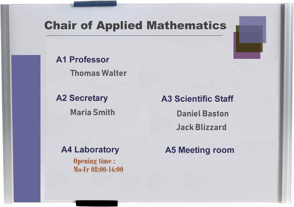 - Montage ohne Böhren oder mit Böhren. Austauschen Kinderleicht : Inhaltschild lässt sich kinderleicht austauschen, erfolgt durch Entnahme der oberen Verschlusskappe und Herausschieben der Acrylplatte. Ideale Informationsschild- oder Türschildlösung