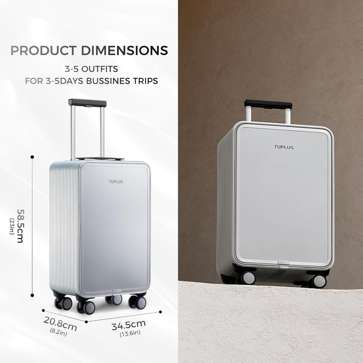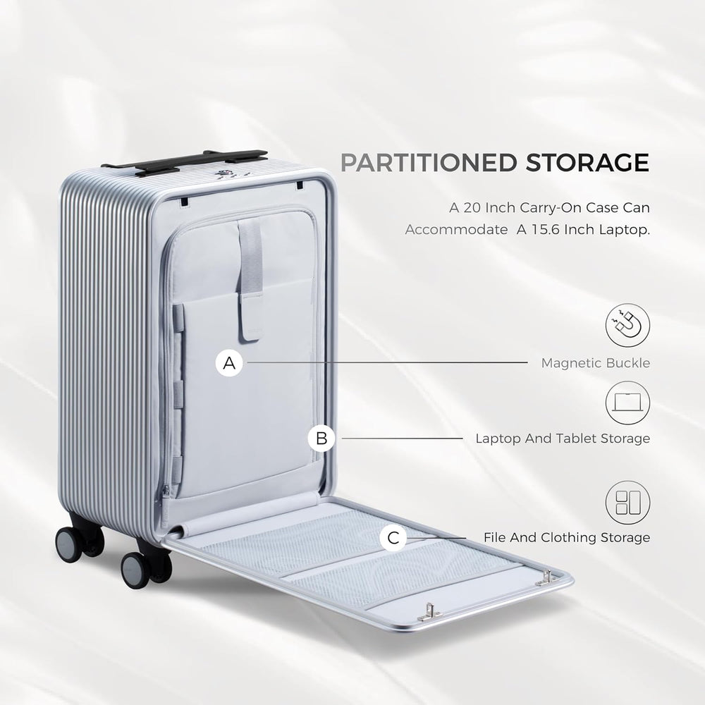 - Vorne zu öffnendes Design: Die vordere Klappe des suitcase kann in einem beliebigen Winkel von 0 bis 90 Grad schwebend gehalten werden. So können Sie im Stehen leicht auf wichtige Gegenstände wie Laptops und Dokumente zugreifen.