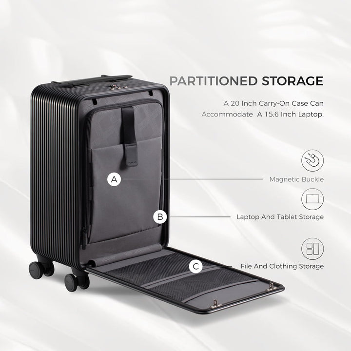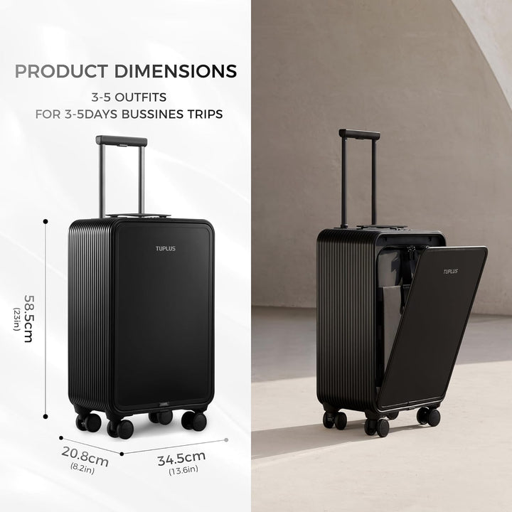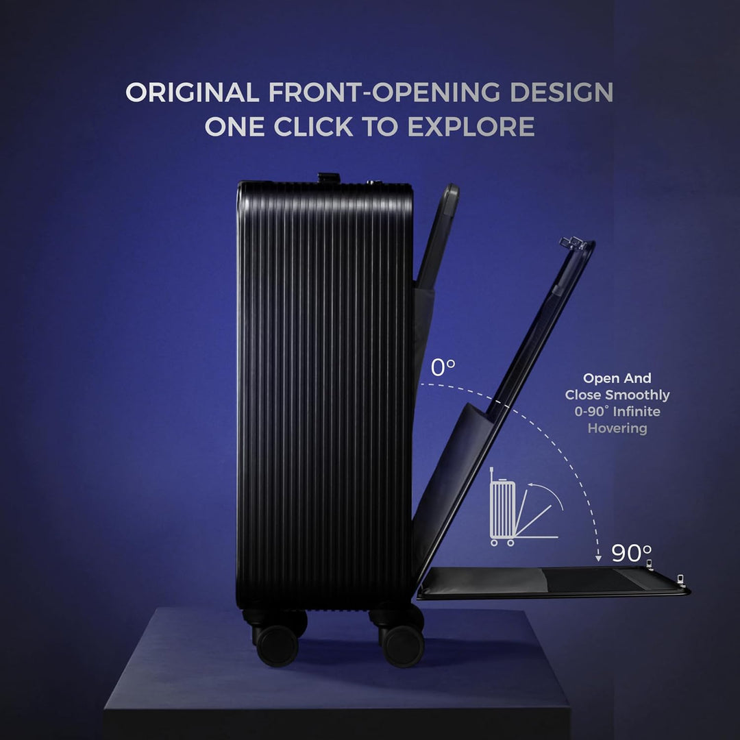 - Vorne zu öffnendes Design: Die vordere Klappe des suitcase kann in einem beliebigen Winkel von 0 bis 90 Grad schwebend gehalten werden. So können Sie im Stehen leicht auf wichtige Gegenstände wie Laptops und Dokumente zugreifen.