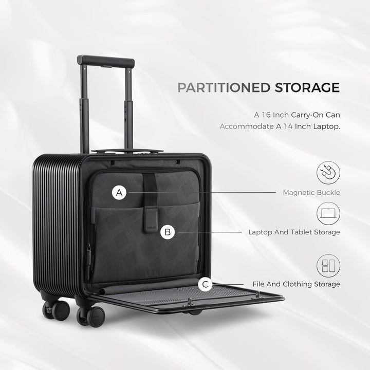 - Vorne zu öffnendes Design: Die vordere Klappe des suitcase kann in einem beliebigen Winkel von 0 bis 90 Grad schwebend gehalten werden. So können Sie im Stehen leicht auf wichtige Gegenstände wie Laptops und Dokumente zugreifen.