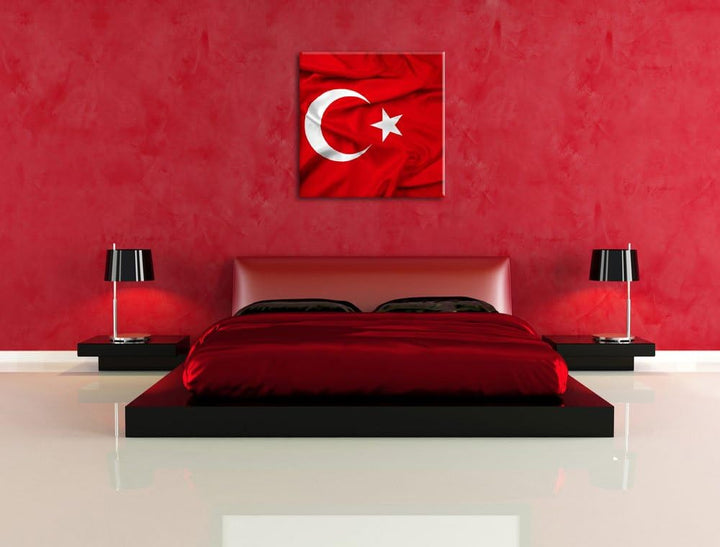 Turkey flag Türkei Flagge, Format: 70x70 auf Leinwand, XXL riesige Bilder fertig gerahmt mit Keilrah