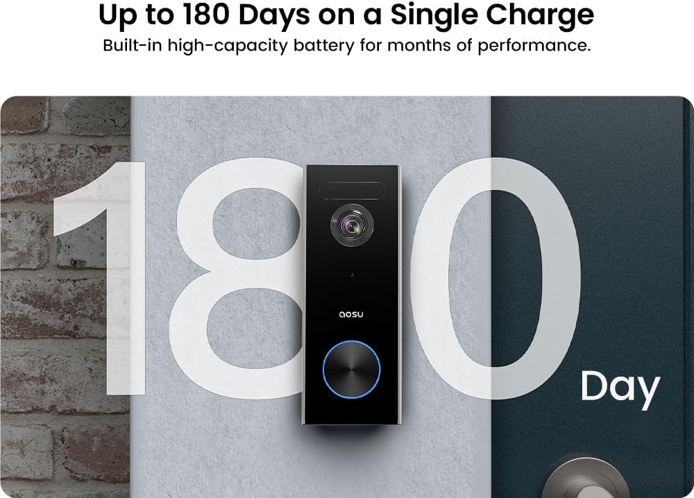 - ✅[180 Tage ab 1 Aufladung/Wasserdichtes Design]: Eingebauter Akku und um 58 % verbrauchsreduzierte kabellose Verbindung mit geringem Stromverbrauch sorgen für 180 Tage einwandfreie Haustürabdeckung ab 1 Aufladung. Mit einer Wetterfestigkeitsbewertung ist die intelligente Türklingel so gebaut, dass sie den Elementen standhält. Egal wie sich das Wetter ändert, die drahtlose Video-Türklingel von aosu hört nie auf, Sie zu schützen.