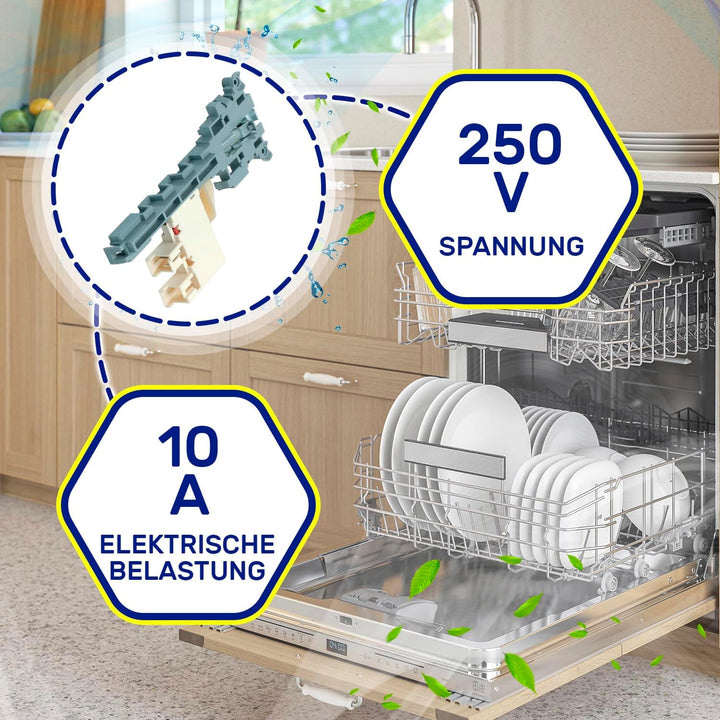 - EIGENSCHAFTEN - Das türschloss der spülmaschine ist für eine maximale elektrische Belastung von 10A und eine Nennspannung von 250V ausgelegt, was die höchste Spannung beschreibt, die das Schloss sicher handhaben kann