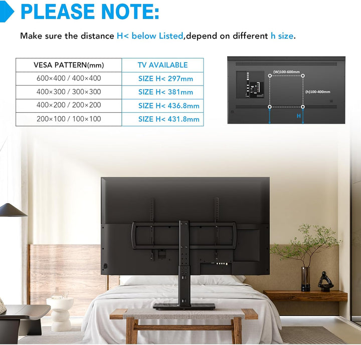 - Kompatibilität - Universal TV Ständer is geeignet für TV-Geräte, PC-Monitore mit Bildschirmdiagonale 32 - 70 Zoll; Bildschirmaufnahme belastbar max. ca.55 kg; VESA Kompatibilität: 600 x 400 mm