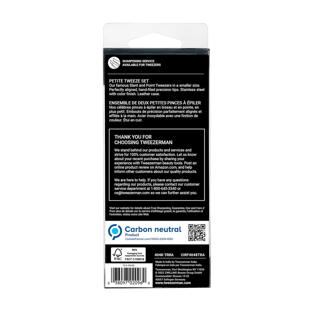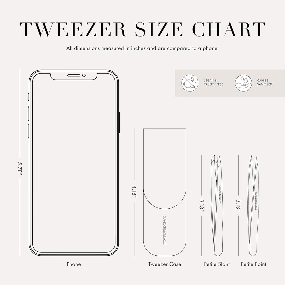 - Edelstahl ist hygienisch, langlebig und leicht zu reinigen. Der Koffer des Petite Tweeze Sets hält Werkzeuge sauber und geschützt.