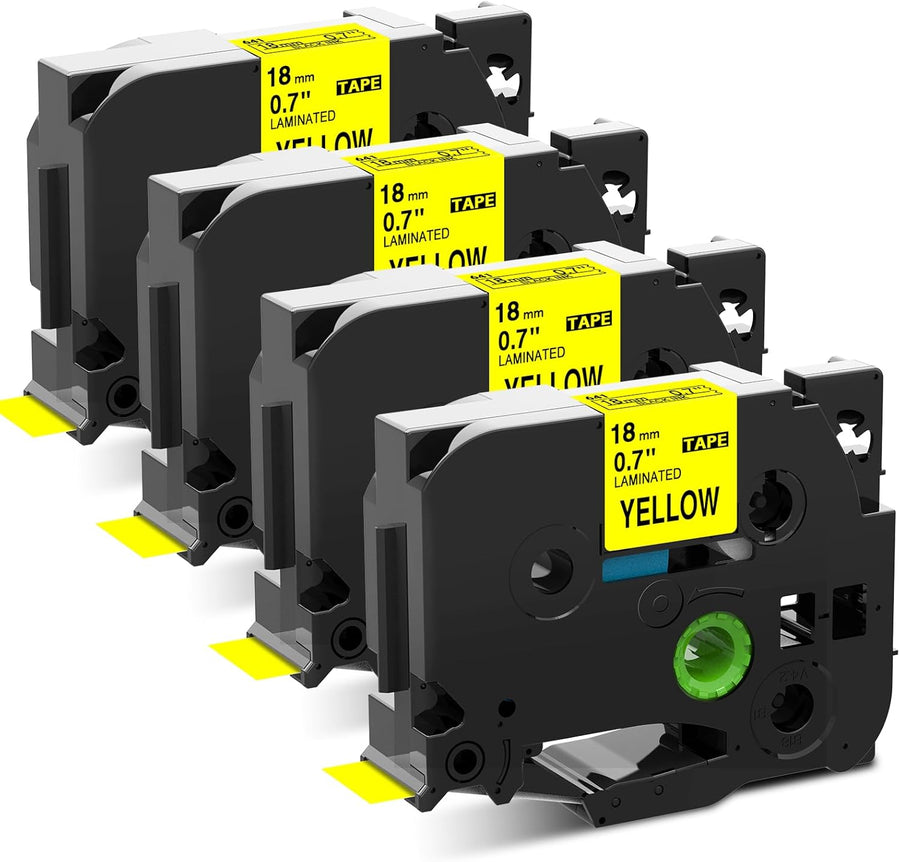 - [Was Sie erhalten] : 4x Kompatibel für brother ptouch tze-641 18mm schriftband /Ersatz für Brother tape cassette tze 18mm laminated gelb. Farbe: schwarz auf gelb / black on yellow; Grösse: je 18mm breit x 8m Länge schriftbandkassette tze 18mm gelb.