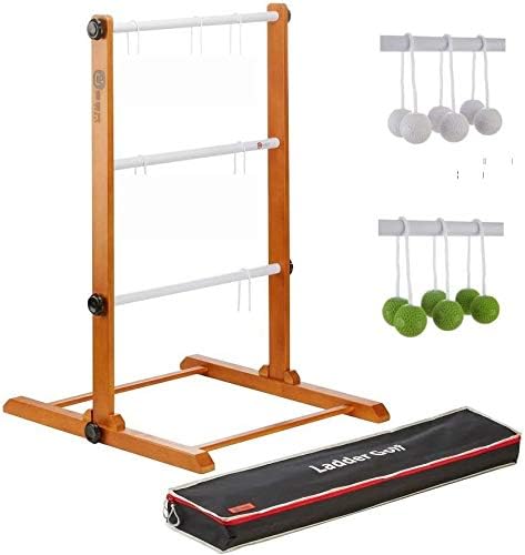 - Das Ladder Golf Set enthält: 1 Spielleiter aus Massivholz 3x2 Bolas SOFT weiss 3x2 Bolas SOFT grün 104 x 71 x 64 cm 1x Luxus Tragetasche
