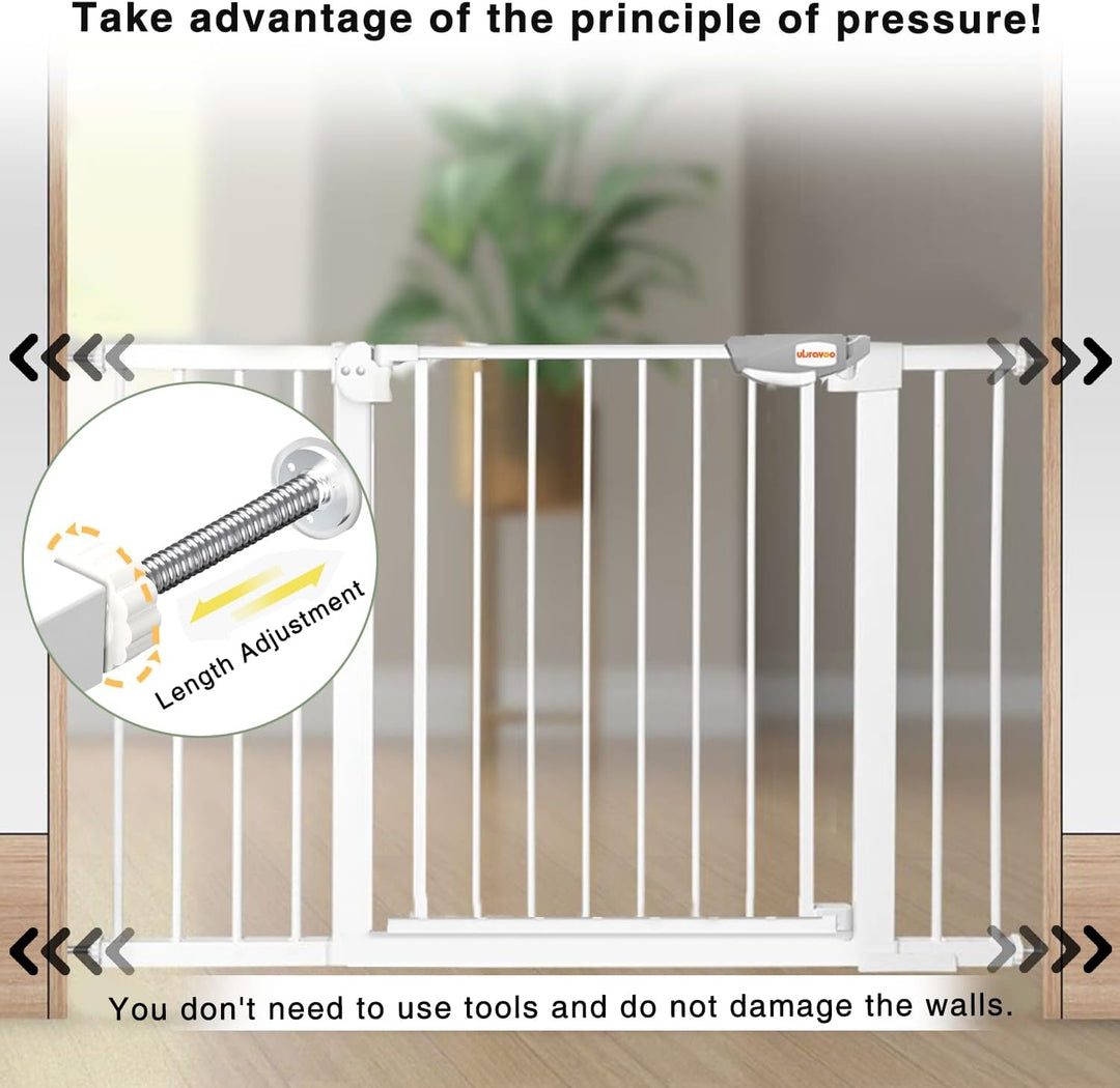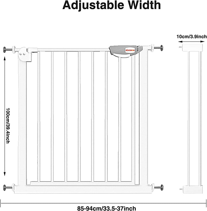- Kinder&Haustiergitter: Standard 100 cm hoch, erweiterbar auf Öffnungen mit einer Breite von 85–94 cm. Ideal für Kleinkinder und Haustiere. Bitte messen Sie Ihre Öffnung vor dem Kauf, um sicherzustellen, dass sie richtig passt.