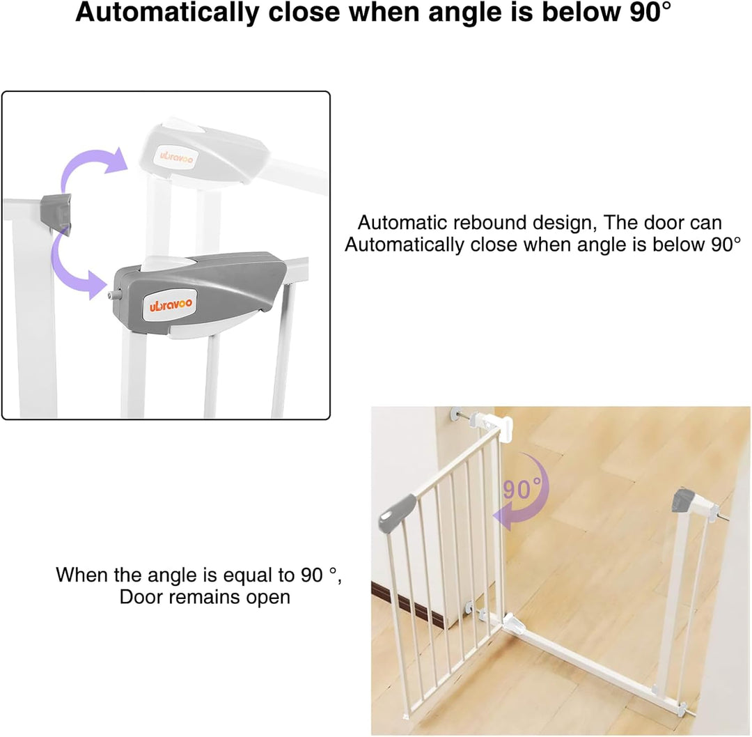 - OPEN KEEP & AUTO CLOSE: Dieses Babyschutzgitter verfügt über eine Funktion, die verhindert, dass das Schliessen beim Betreten oder Verlassen vergessen wird, und verriegelt automatisch, wenn die Tür unter 90 Grad steht. Die Tür stoppt und hält sie