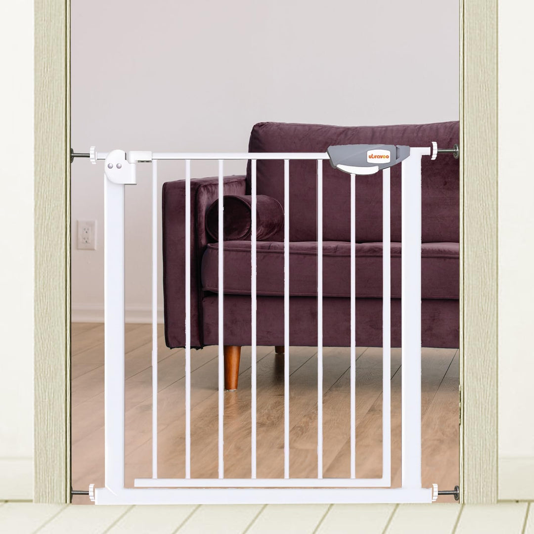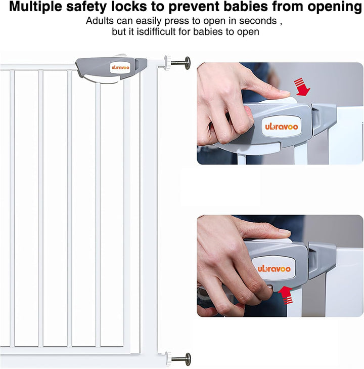 - DOPPELTE SICHERHEIT FÜR BABYS: Mehr Sicherheit durch ein doppeltes Verriegelungssystem. Drücken Sie mit einer Hand auf die beiden Knöpfe oben und unten am Griff, um das Tor leicht zu öffnen. Für Kleinkinder ist es schwierig, das Einhand-Schutzgitter