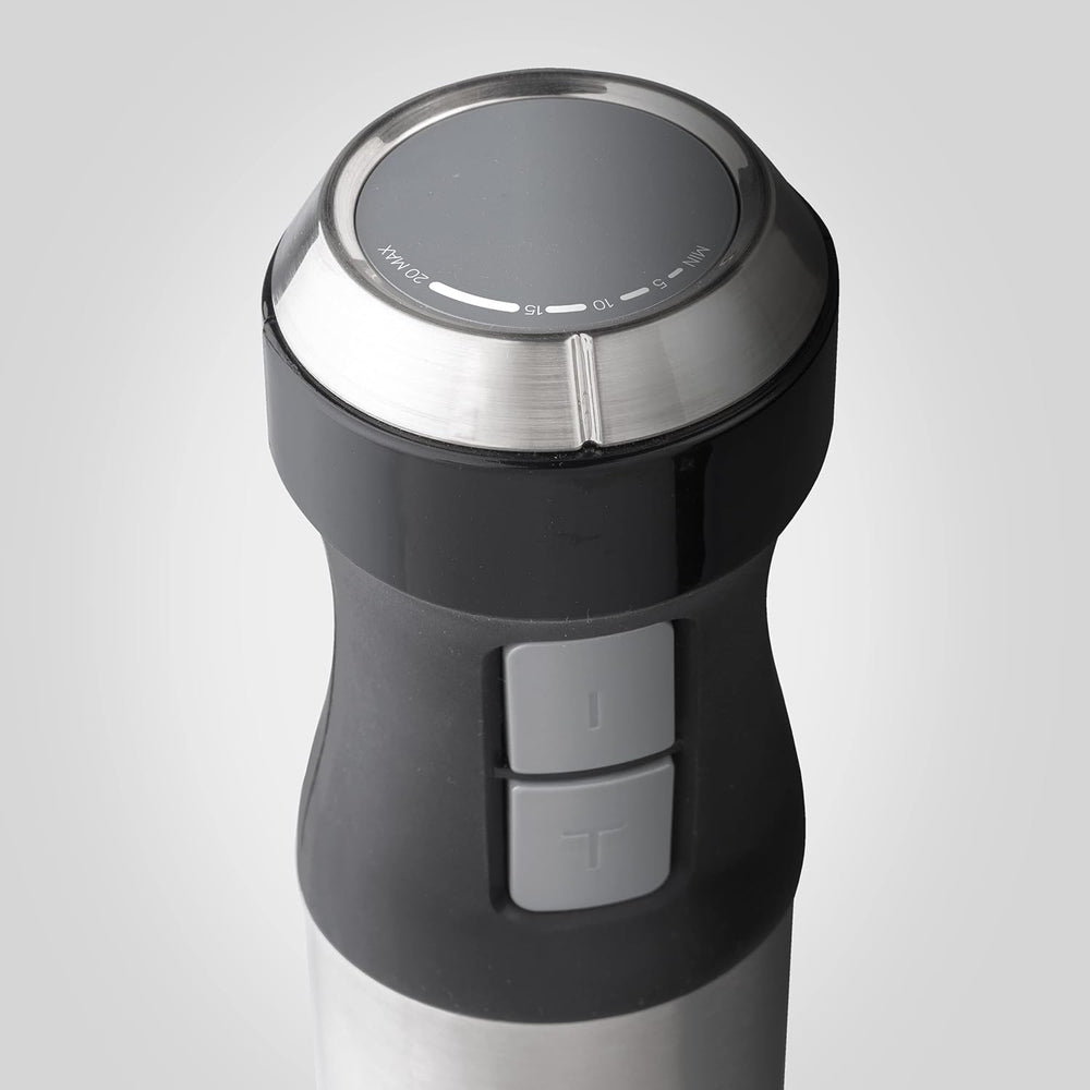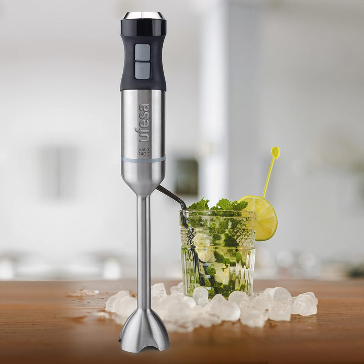 - LEISTUNG UND GESCHWINDIGKEITEN. BPA-freier Minipimer mit 1400 W Leistung, TURBO-Funktion und 20 einstellbaren Geschwindigkeiten für die Verarbeitung aller Arten von Lebensmitteln.