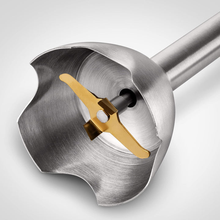 - KLINGEN. 4 Hochleistungs-Titanklingen für längere Lebensdauer und bessere Leistung bei der Lebensmittelverarbeitung.