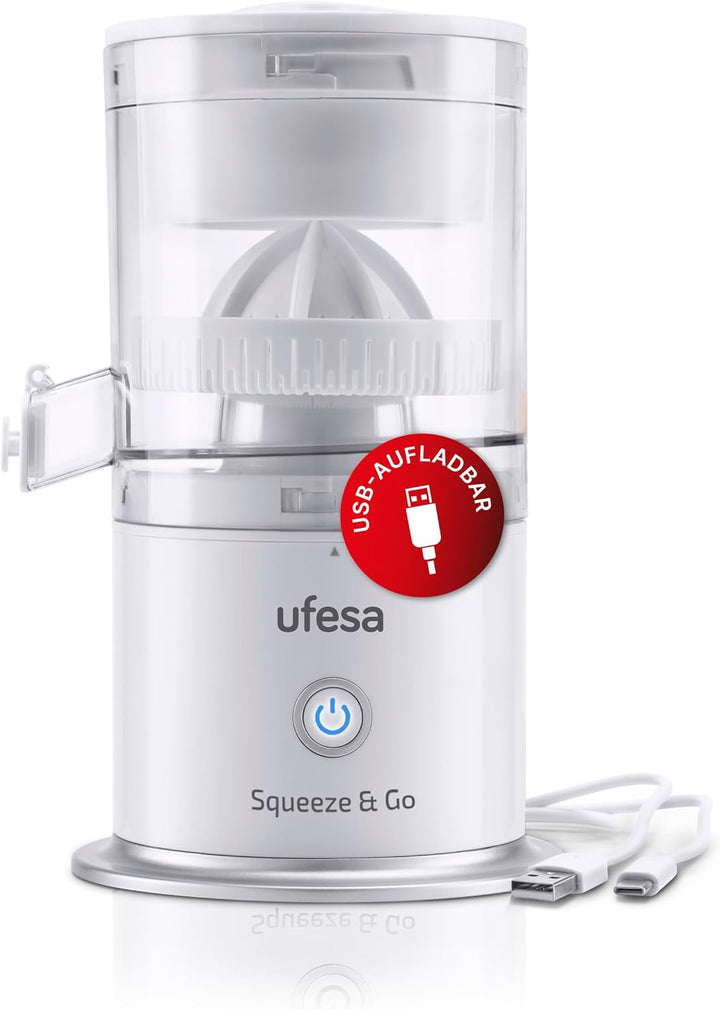 - TRAGBAR UND LEISTUNGSSTARK. Mit seinem Absaugsystem und einer Leistung von 45 W ist er ideal zum Auspressen aller Arten von Obst. Da er klein und kabellos ist, können Sie ihn überall verwenden. Mit einer vollen Ladung können Sie ihn bis zu 30 Mal