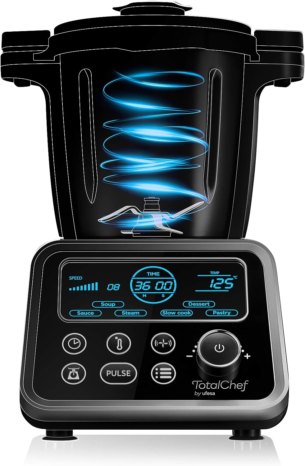 - Küchenmaschine mit einem LCD-Bildschirm mit Informationen: Zeit, Temperatur, Geschwindigkeit und automatischer Programm, damit Sie alles im Blick haben. Dampfprogramme, langsames Garen, Teig, Desserts, Wasserbad, Emulsion, Confit, Frittieren, Mixen,