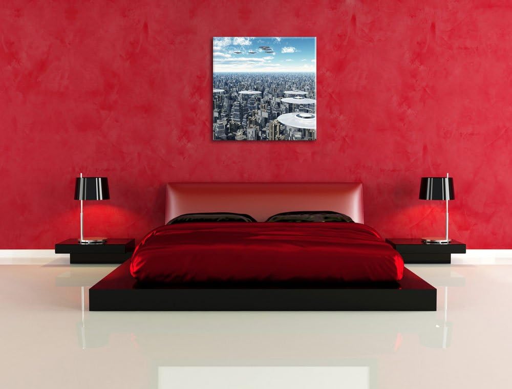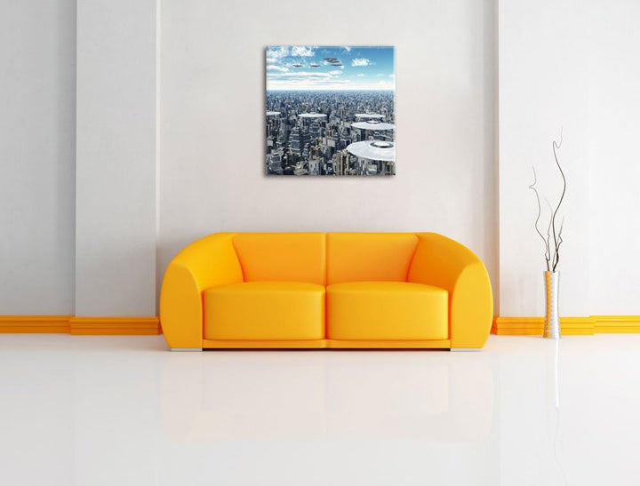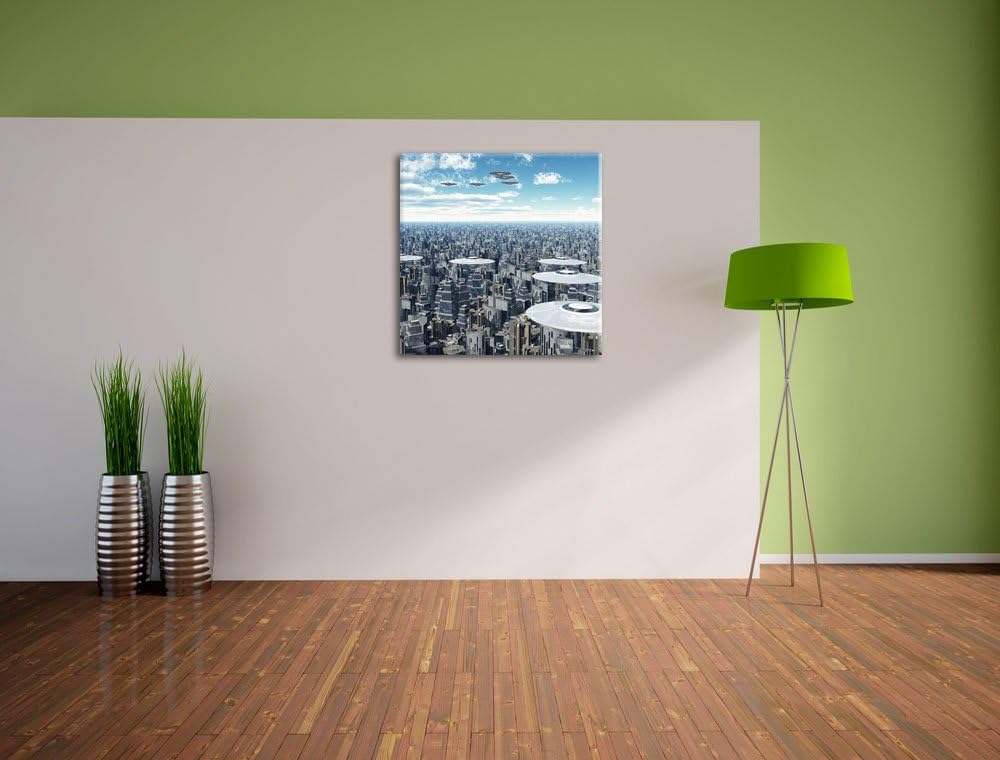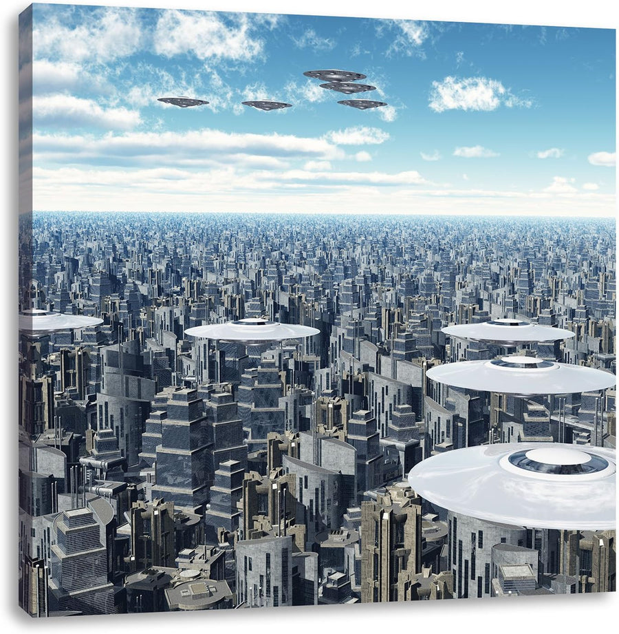 Ufo´s über der Stadt, Format: 70x70 auf Leinwand, XXL riesige Bilder fertig gerahmt mit Keilrahmen,