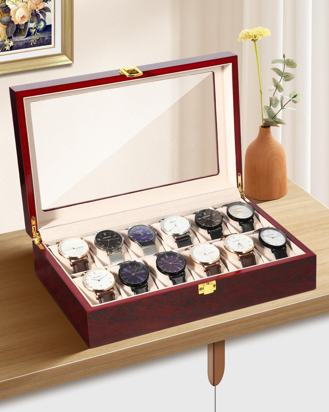 - HOHE QUALITÄT: Die Uhrenkasten Holz ist ausgekleidet mit weichem Samt oben, nicht nur Durable sondern nützlich. Dieses Uhrenbox ist ein gutes Geschenk für jede Feier oder Festival wie Valentinstag, Weihnachten, Geburtstage, Förderung, etc.