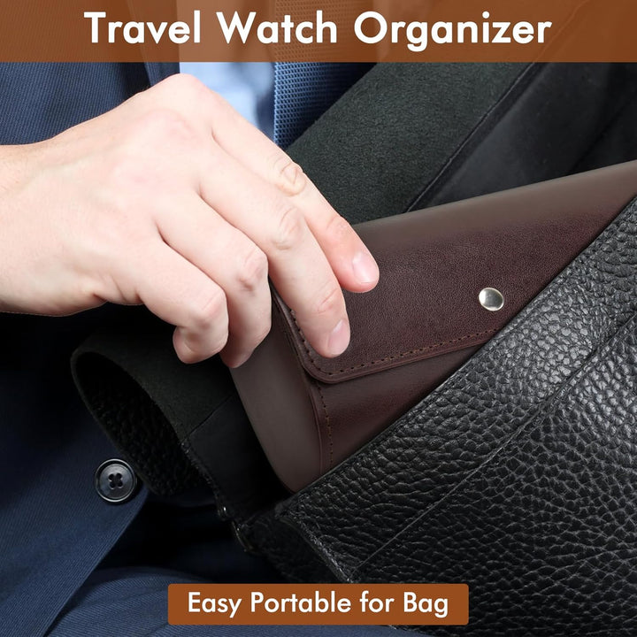 - 【Aufwändiges Design】 Die watch travel case besteht aus dunkelbraunem, hochwertigem PU-Leder, die Nähte sind sauber und gleichmässig, die Details sind exquisit, das Innere ist aus weichem Samt, die solide Trennwand bildet drei separate Schlitze und