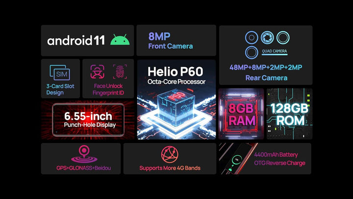- ★ 【MediaTek Helio P60 Octa-Core-Prozessor, mehr Leistung für Ihr Vergnügen: 】Ulefone Note 11P wird von MediaTekHelio P60 AI-Prozessor angetrieben und bietet leistungsstarke und stabile Leistung, reibungsloses Multitasking, nahtloses