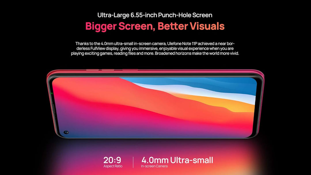 - ★ 【Ultra-grosser 6,55-Zoll-Punch-Hole-Bildschirm, grösserer Bildschirm, bessere Grafik: 】Dank der 4,0-mm-Ultra-Small-In-Screen-Kamera erzielte Ulefone Note 11P eine nahezu randlose Vollbildanzeige; damit erhalten Sie ein beeindruckendes visuelles