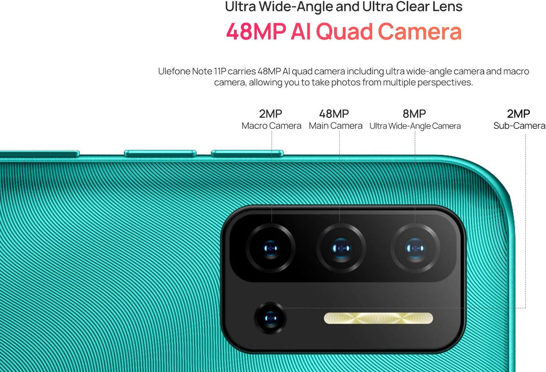 - ★ 【Ultraweitwinkel- und Ultraklarobjektiv, 48MP AI Quad-Kamera: 】Ulefone Note 11P enthält den Flaggschiff-Samsung 48MP-Sensor, einschliesslich Ultraweitwinkelkamera und Makroobjektiv, mit dem Sie Fotos aus mehreren Perspektiven aufnehmen