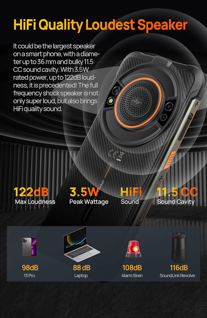 - ★【Lautester Lautsprecher in HiFi-Qualität, 3,5W Spitzenleistung & 122dB Spitzenlautstärke:】Es könnte der grösste Lautsprecher auf einem Smartphone sein, mit einem Durchmesser von bis zu 36 mm und einem sperrigen 11,5 cm³ Schallhohlraum. Mit