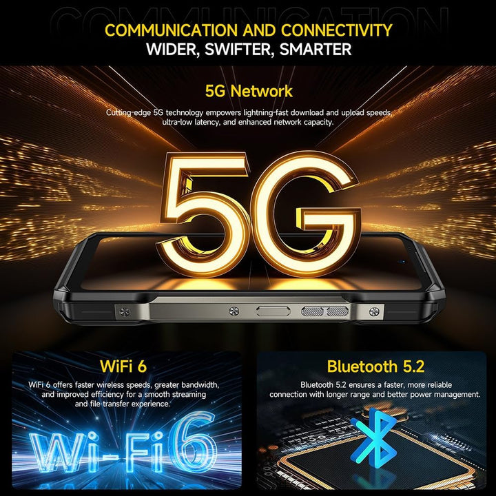 - 📶【Dual SIM 5G Android Phones and 24 Month Warranty】Das Ulefone SIM Free 5G Outdoor Smartphone ist ein globales, 5G/4G/3G Mobiltelefon, kompatibel mit allen grossen Betreibern wie T-Mobile, Vodafone, O2, E Plus, 1&1, AT&T, Orange, SFR, EE, Three,