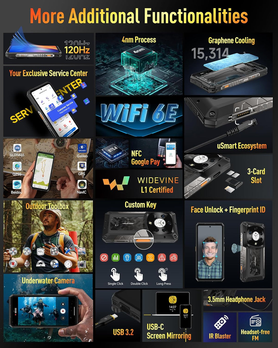 - ✨AI-Toolbox + uSmart-Anschluss: Integrierte Ulefone-KI-Toolbox: Bietet AI-Objektentfernung, Hintergrundunschärfe, wodurch die kreative Effizienz um 300 % gesteigert wird! Unterstützt den uSmart-Anschluss, der mit Ulefone-Endoskopen E02, Mikroskopen