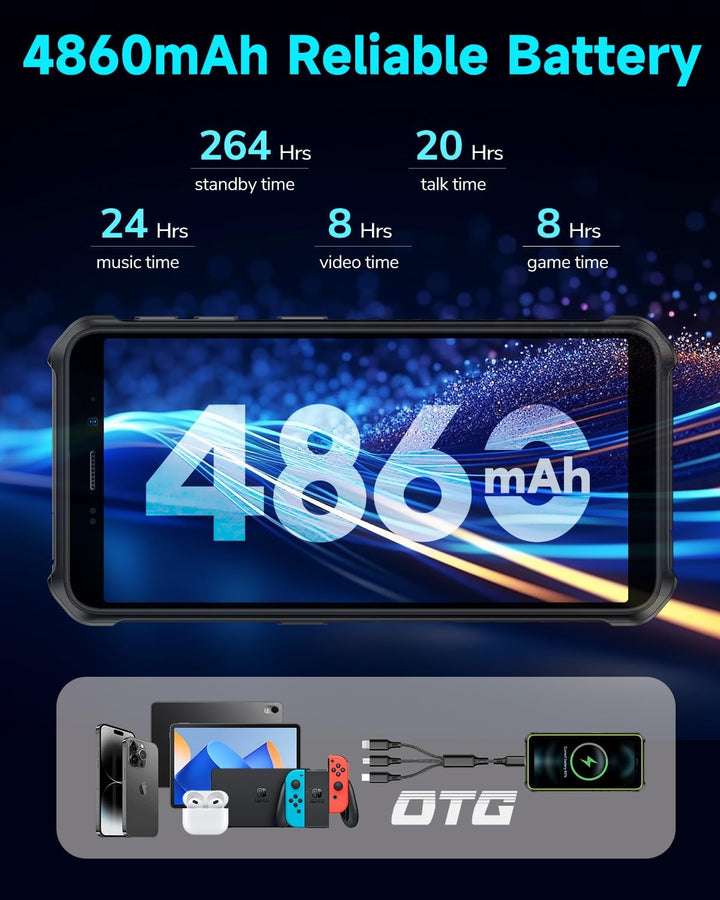 - 【4860mAh Langlebiger Akku + Powerbank Funktion】: Ulefone Armor X12 ausgestattet mit einem 4860mAh Akku, kann 264 Stunden Standby-Zeit, 20 Stunden Sprechzeit, 28 Stunden Musikzeit und 8 Stunden Videozeit haben, 1 Tage Nutzung mit nur 1 Aufladung kann.