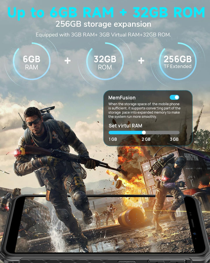 - 【Bis zu 6GB RAM +32GB ROM /256GB SD】: Das Ulefone Armor X12 Robustes handy ausgestattet mit MediaTek Helio A22 2,0GHz processor bietet Ihnen die Leistung und Geschwindigkeit, auf die Sie sich immer verlassen können. Verfügt über bis zu 6GB RAM(3GB