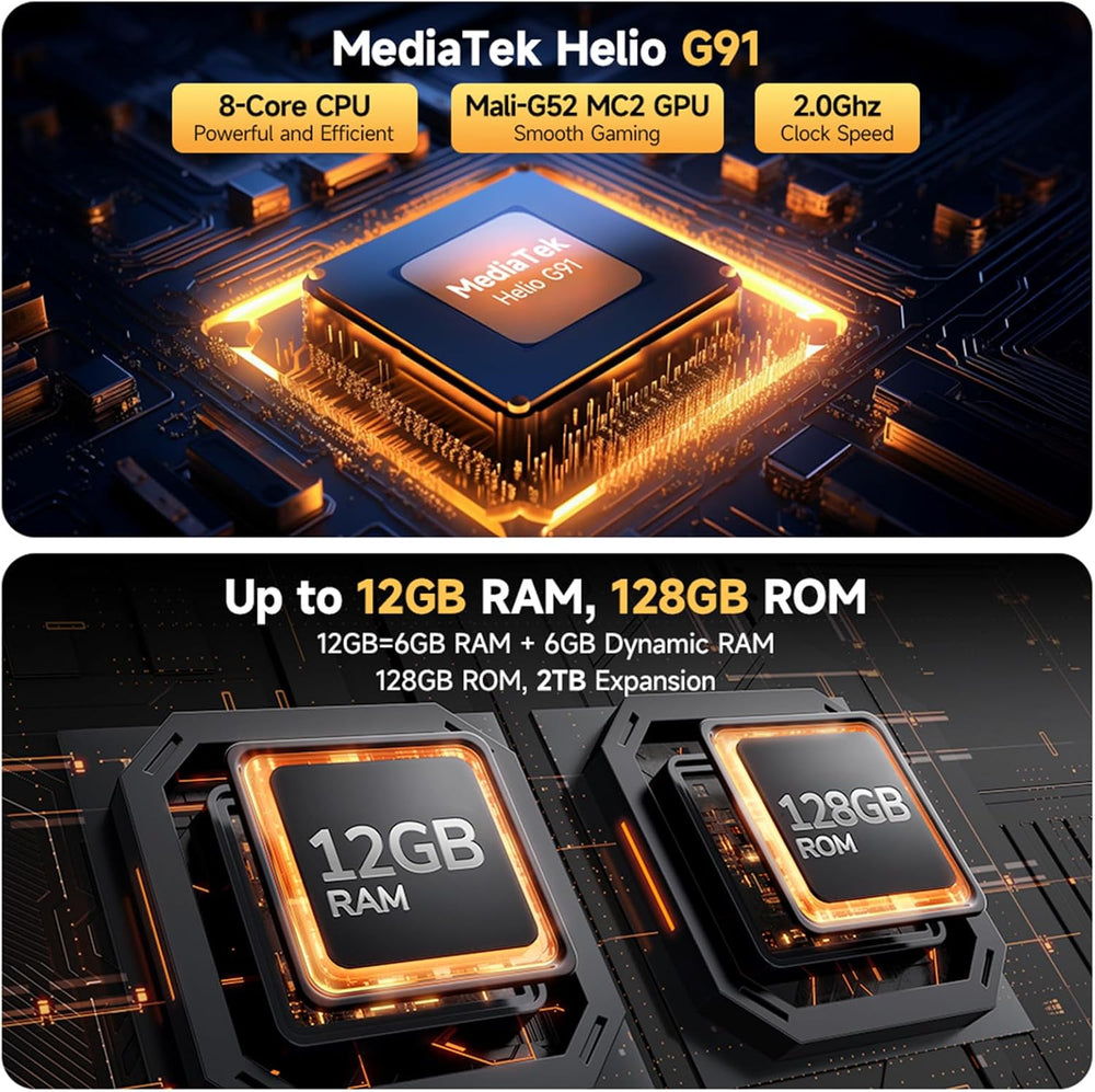 - 【MediaTek Helio G91, 12GB + 128GB/2TB, Upgradable to Android 15】Das Ulefone Armor X32 ist mit dem MediaTek Helio G91 Octa-Core 2,4 GHz Prozessor ausgestattet und nutzt Android 14 für eine reibungslose Performance. Es bietet 12GB RAM (6GB RAM + 6GB