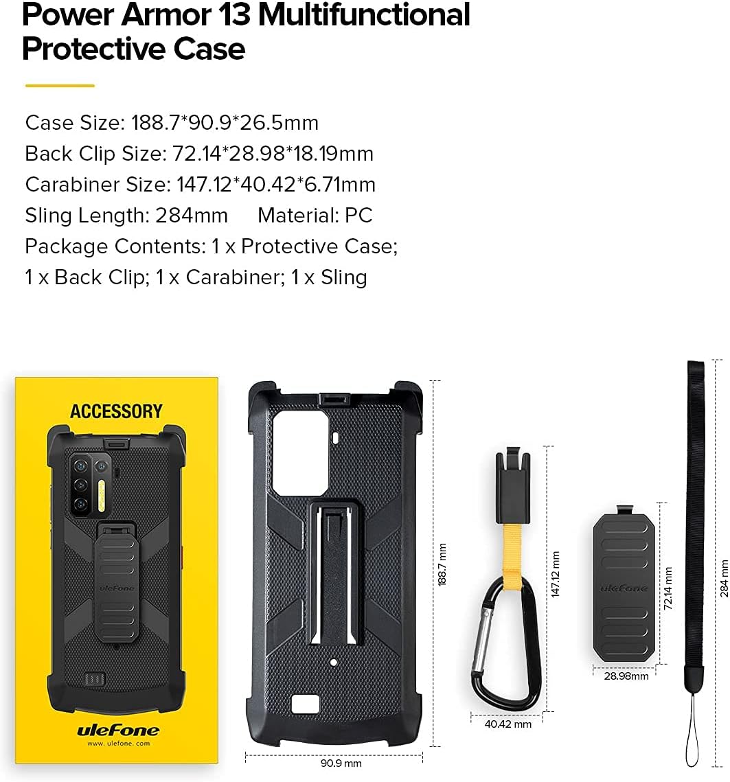- Verpackungsabmessungen (L B H) : 101,3 x 195 x 32 mm. Länge der Schnur (mm): 284 mm. Material: PC Gesamtgewicht der Verpackung: 175g Farbe: schwarz Kompatibler Modus: Ulefone Power Armor 13. Lieferumfang: 1 x Schutzhülle, 1 x Clip, 1 x Karabinerhaken,