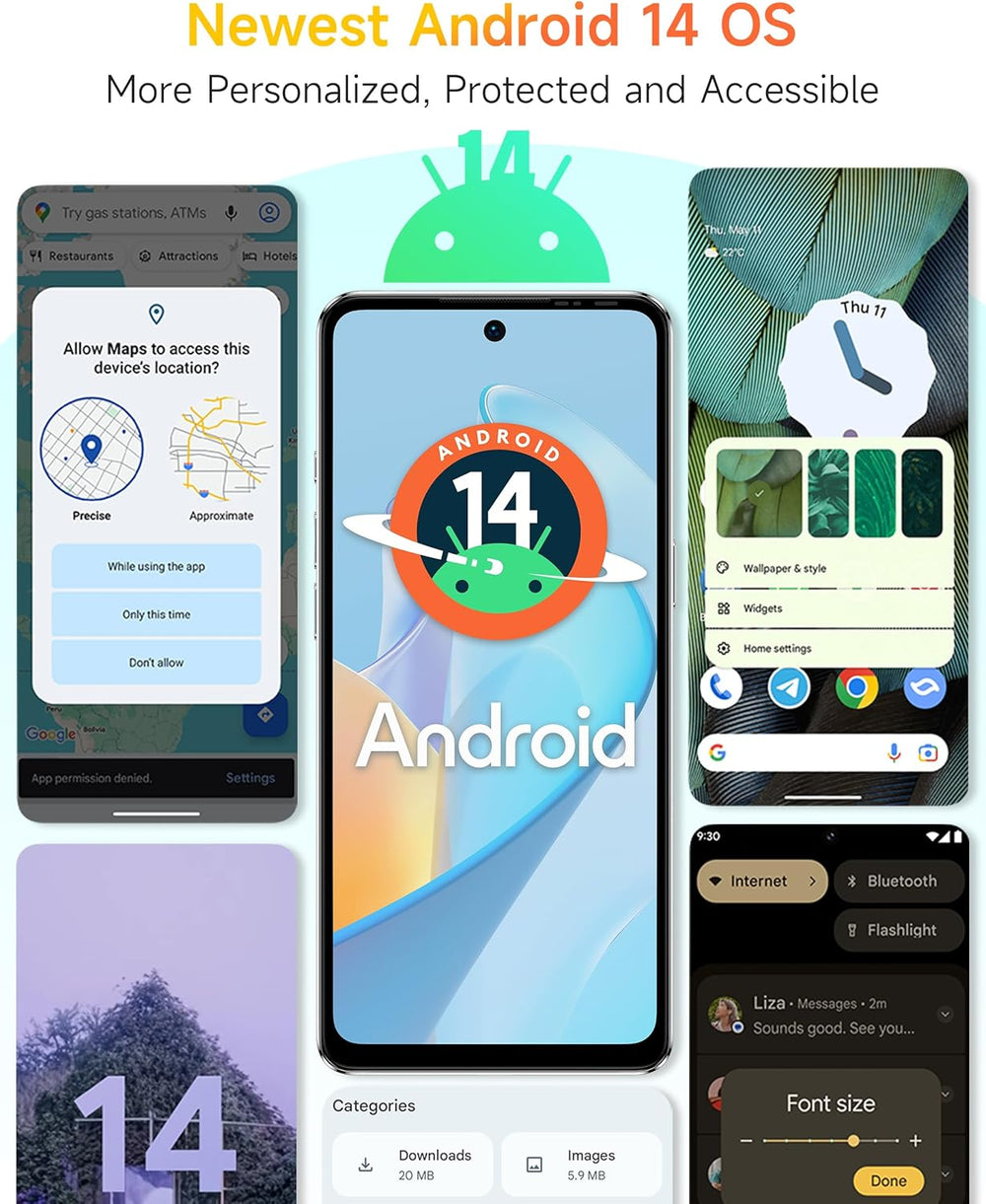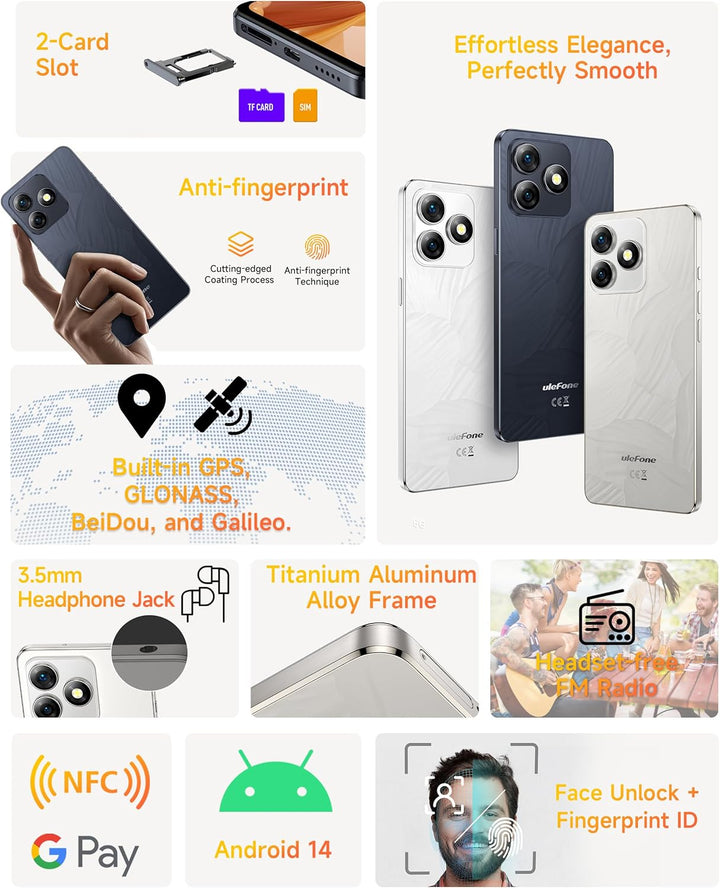 - ✨Android 14 System: Auf dem Ulefone Note 18 Pro läuft das Betriebssystem Android 14. Mit Android 14 hat das Handy Ulefone Note 18 Pro viele neue Animationen eingeführt, die das System “lebendiger” erscheinen lassen. Natürlich gibt es noch