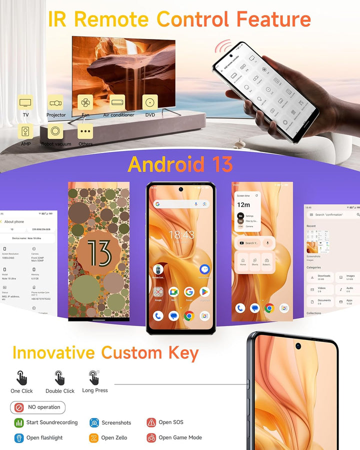 - Android 13 & NFC & 4 Navigationssysteme & 2 Jahre Garantie:Das ulefone note 18 ultra handy ohne vertrag android 13 ist mit dem neuesten Android 13 System ausgestattet, das mehrere Anwendungen und Funktionen unterstützt, unterstützt NFC, sicheren