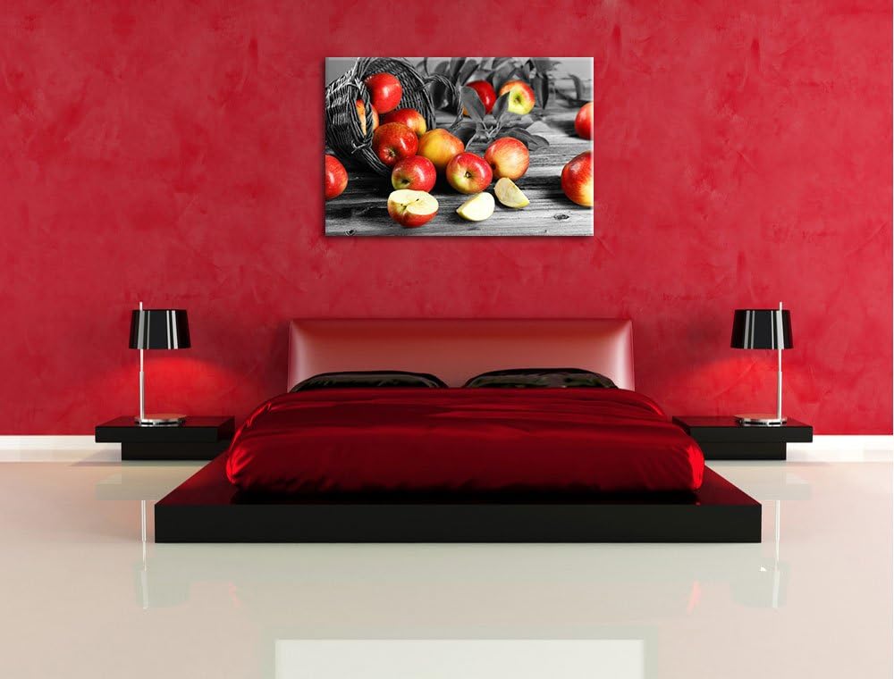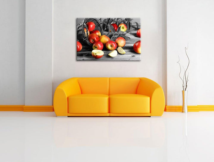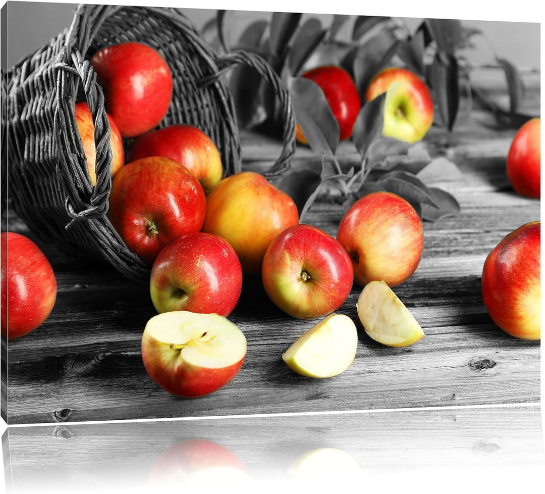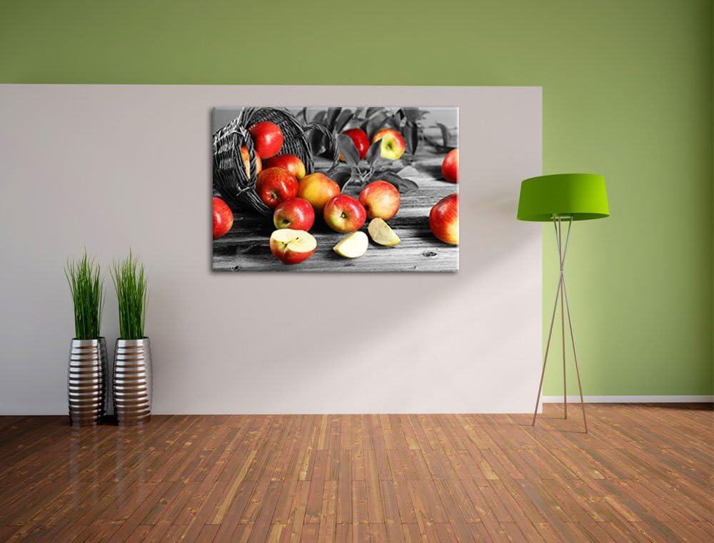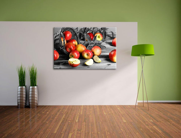 Umgefallener Apfelkorb mit roten Äpfeln schwarz/weiss Format: 100x70 auf Leinwand, XXL riesige Bilde