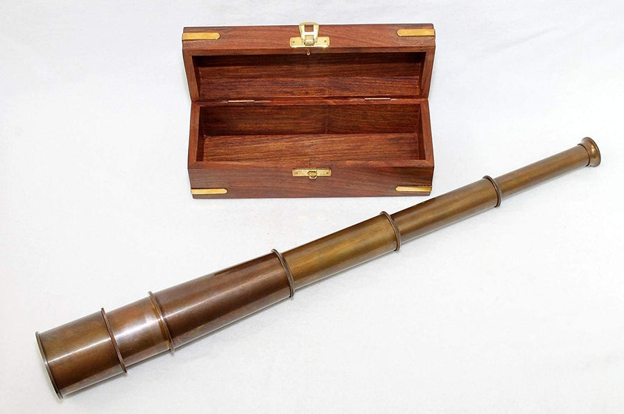Unbekannt Antik Fernrohr Messing Teleskop ausziehbar auf ca. 50 cm in Edler Holzbox