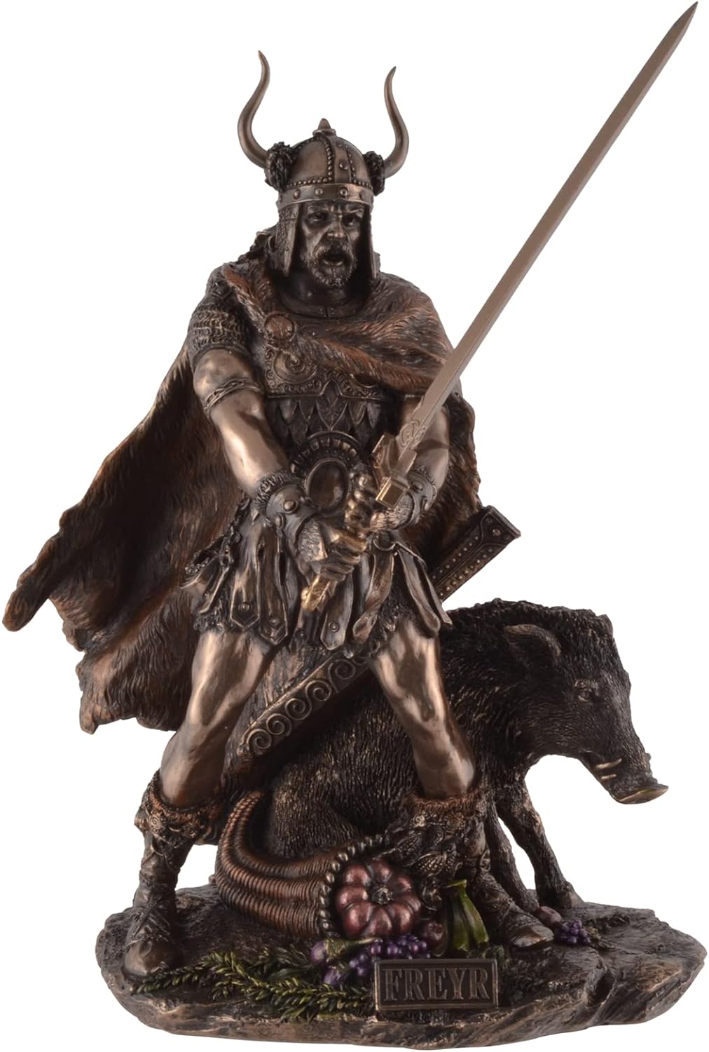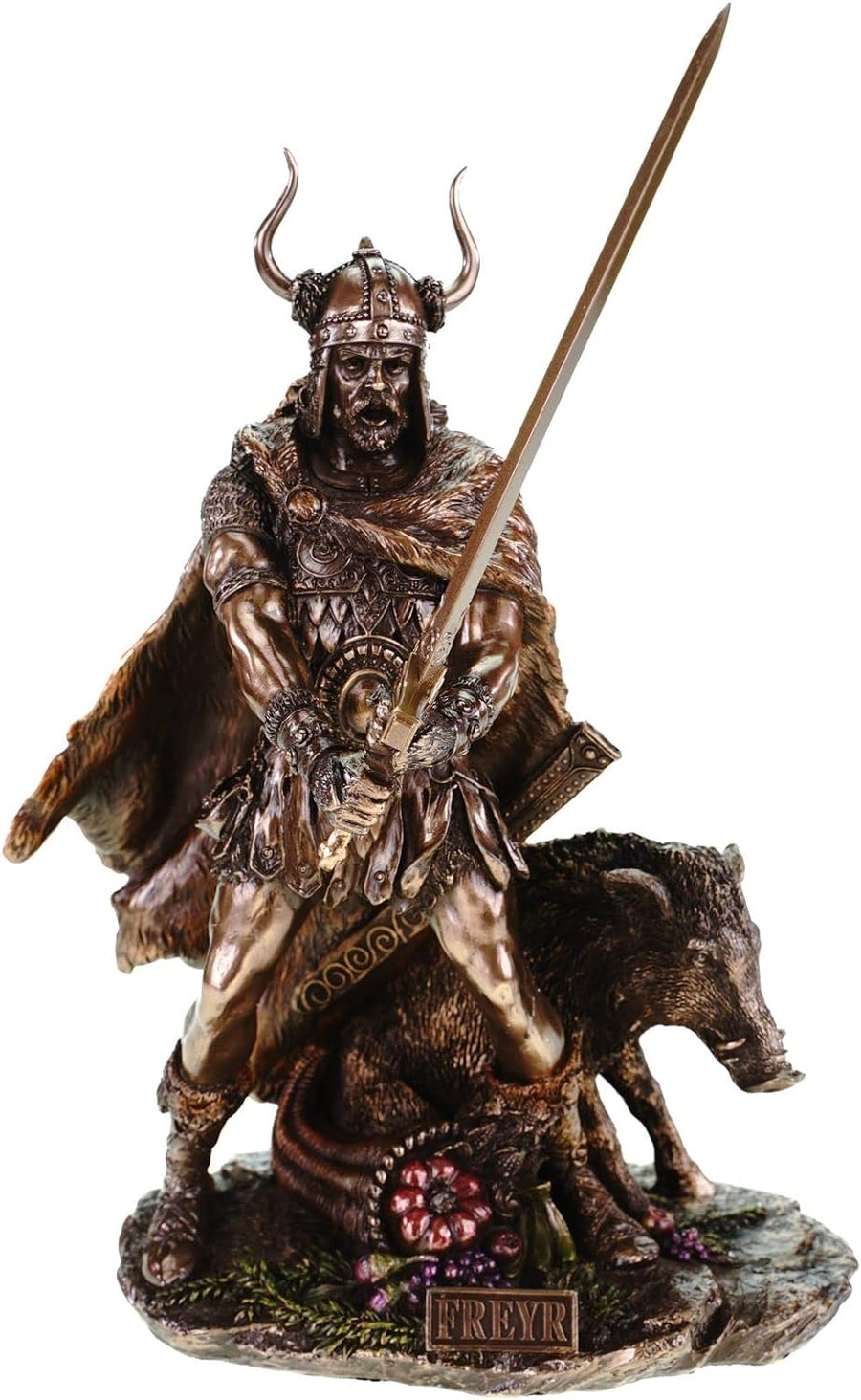 - Nordische Gott Freyr mit erhobenem Schwert und Wildschwein