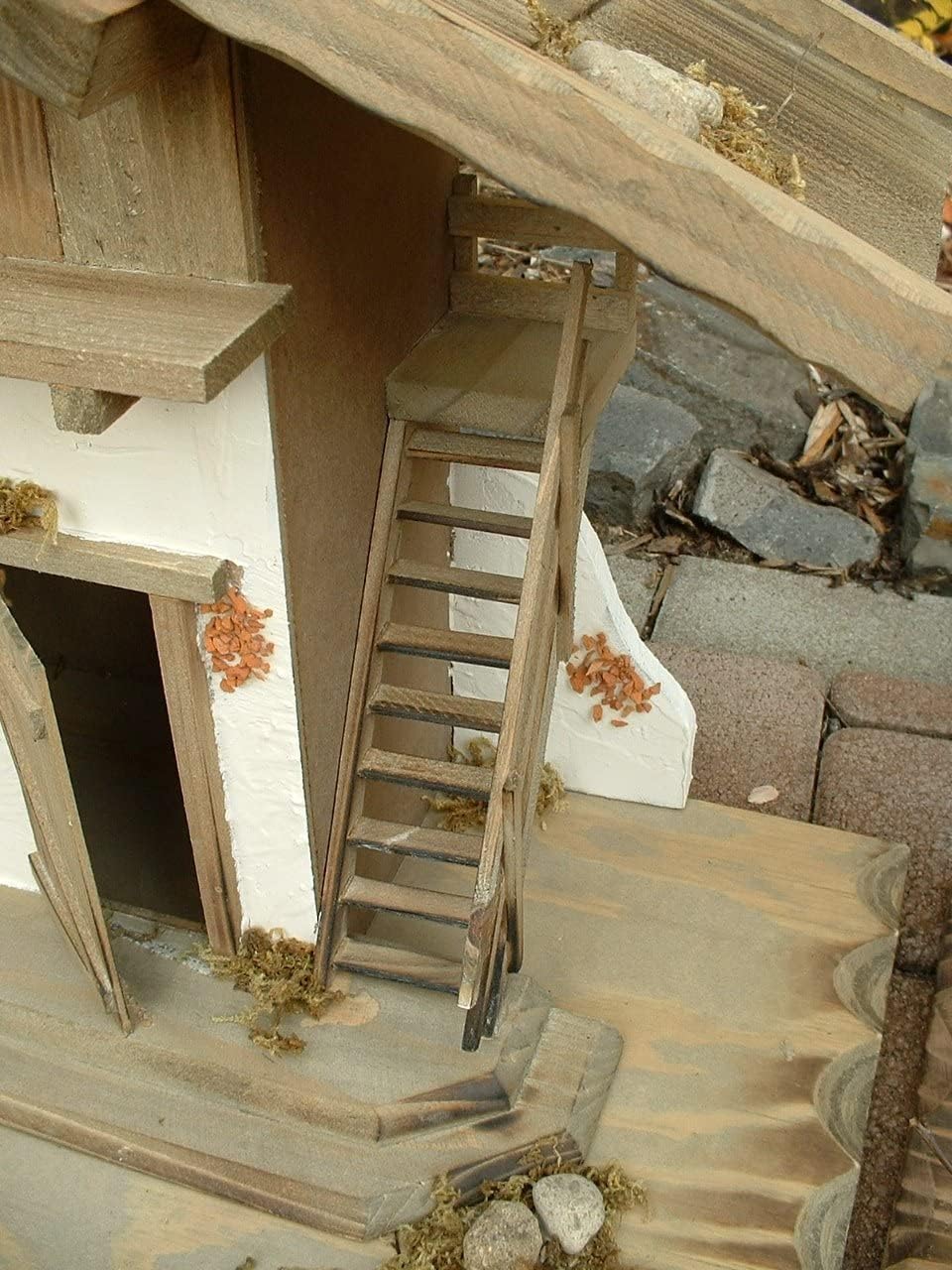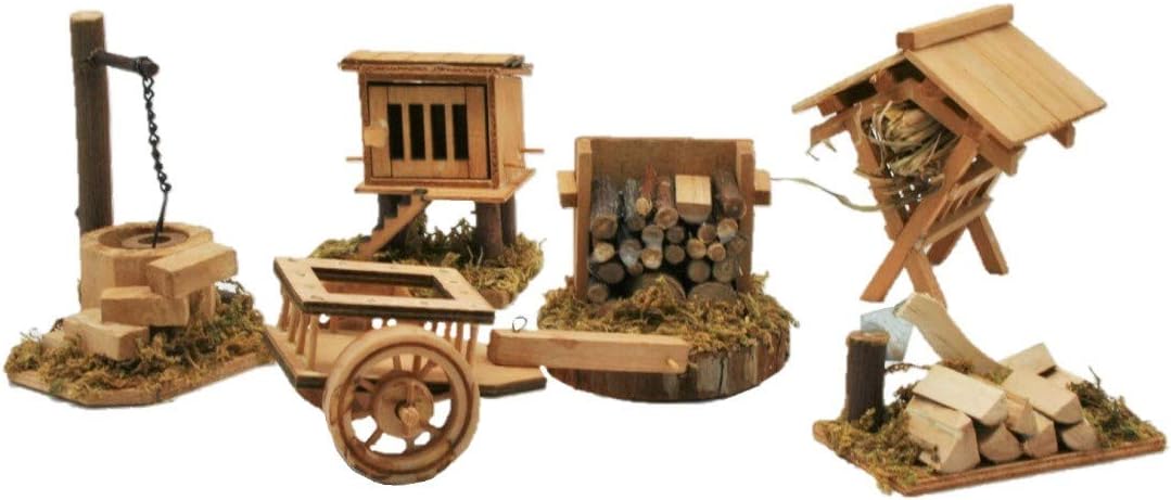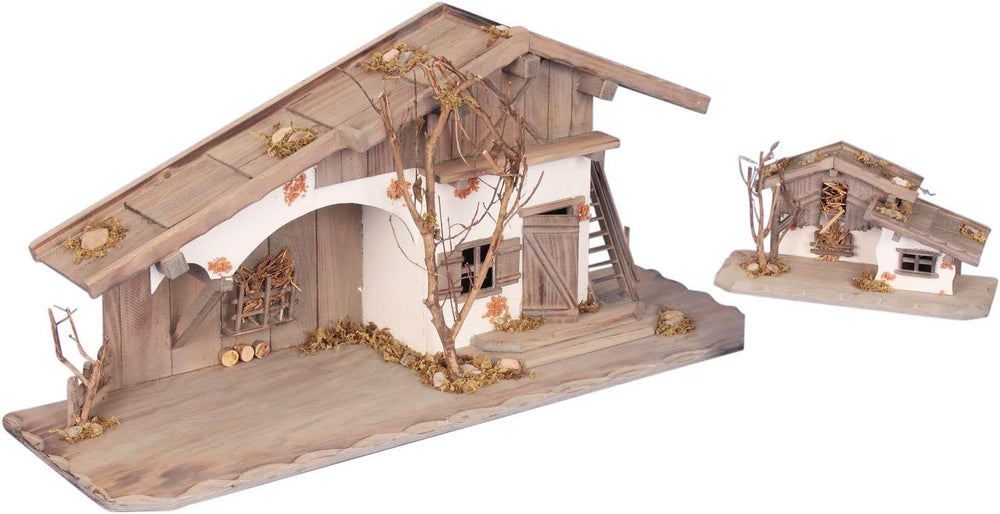 Unbekannt Grosses Krippenset Holzhaus 80cm + Haus 27cm + Krippen Zubehör mit Brunnen Holzhaufen Stal