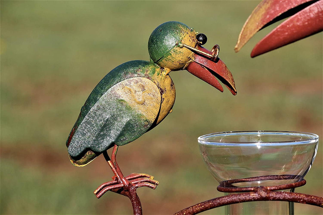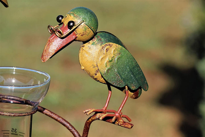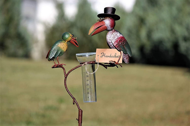 - Ausgefallener farbiger bunter Regenmesser Rabenpaar aus Metall / Glas · Bunt