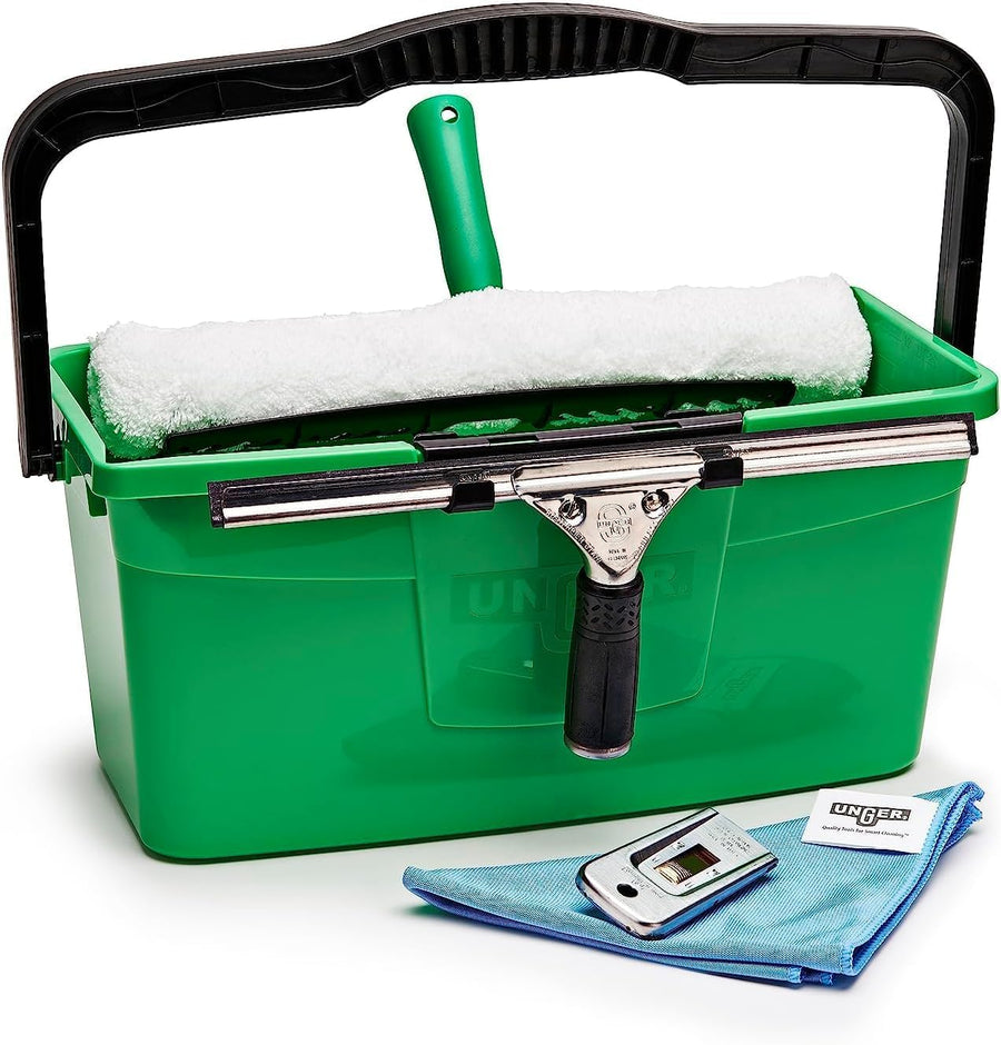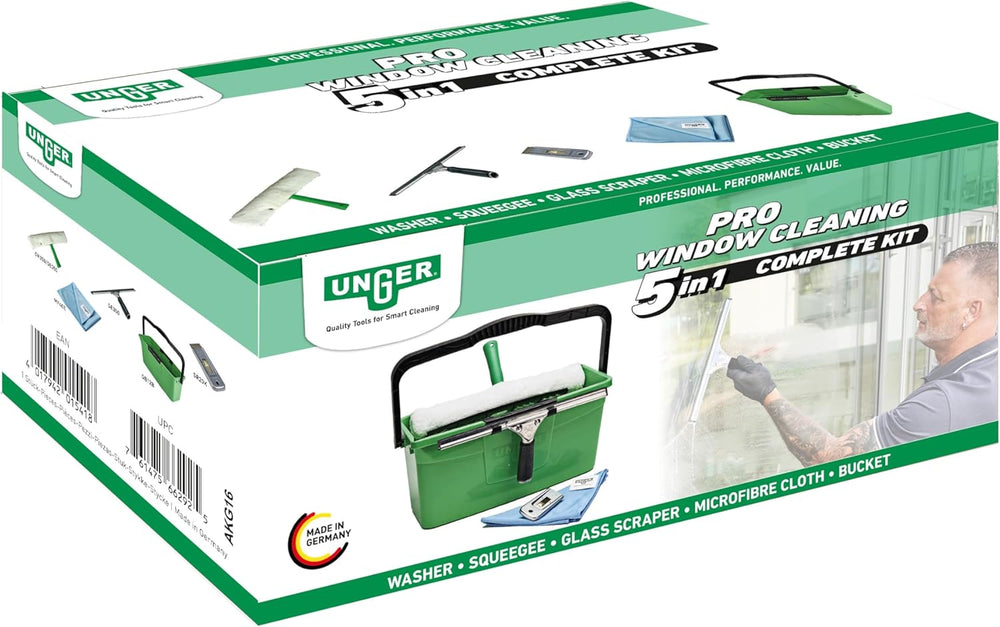 Unger PRO Komplett-Set 5in1 (inkl. Einwascher, Fensterwischer, Mikrofasertuch, Sicherheitsschaber, E