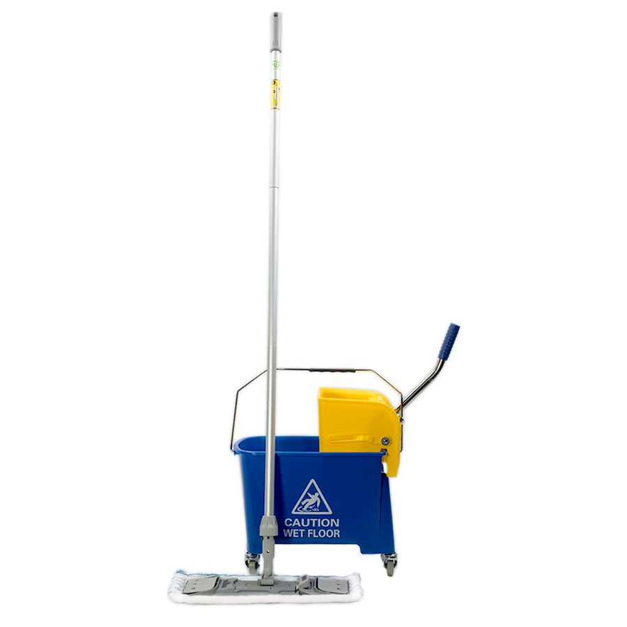 • Im Lieferumfang sind ein Doppelfahreimer und ein Wischbezug mit Flachmopp-Klappenhalter enthalten
