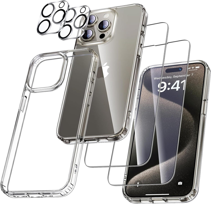 - 5-in-1 Hülle Set für iPhone 15 Pro: UniqueMe hat dieses Kombi-Produkt speziell für iPhone 15 Pro entwickelt ,mit 1 Handyhülle & 2 Stück Schutzglas & 2 Stück Kameraschutz, einen Rundumschutz Ihres Mobiltelefons zu bieten