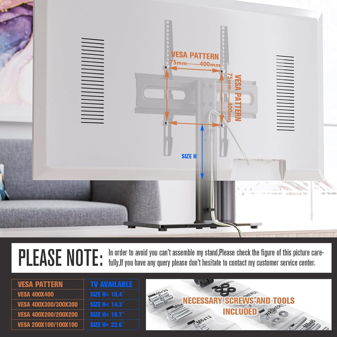 • STABILITÄT UND VIELE ANWENDUNGEN UNIVERSAL-FERNSEHSTÄNDER ☞ Entworfen mit einer hochbelastbaren elliptischen Stahlplatte und einem 8mm gehärteten Glasfuss, kann mein stabiler freistehender TV-Halter Ihren Fernseher auf Ihrem Tisch mit Sicherheit und