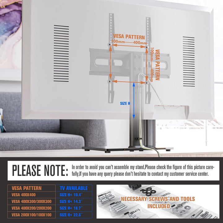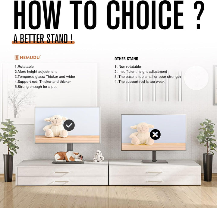 - - STABILITÄT UND VIELE ANWENDUNGEN UNIVERSAL-FERNSEHSTÄNDER ☞ Entworfen mit einer hochbelastbaren elliptischen Stahlplatte und einem 8mm gehärteten Glasfuss, kann mein stabiler freistehender TV-Halter Ihren Fernseher auf Ihrem Tisch mit Sicherheit
