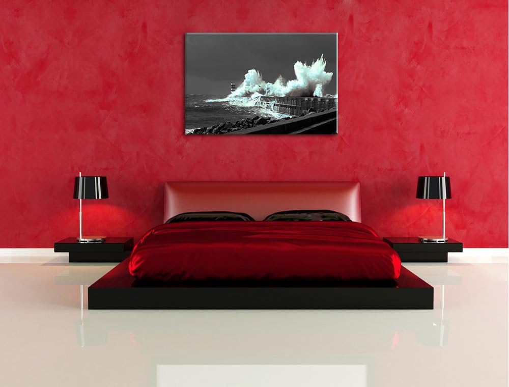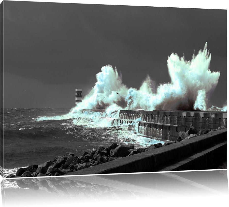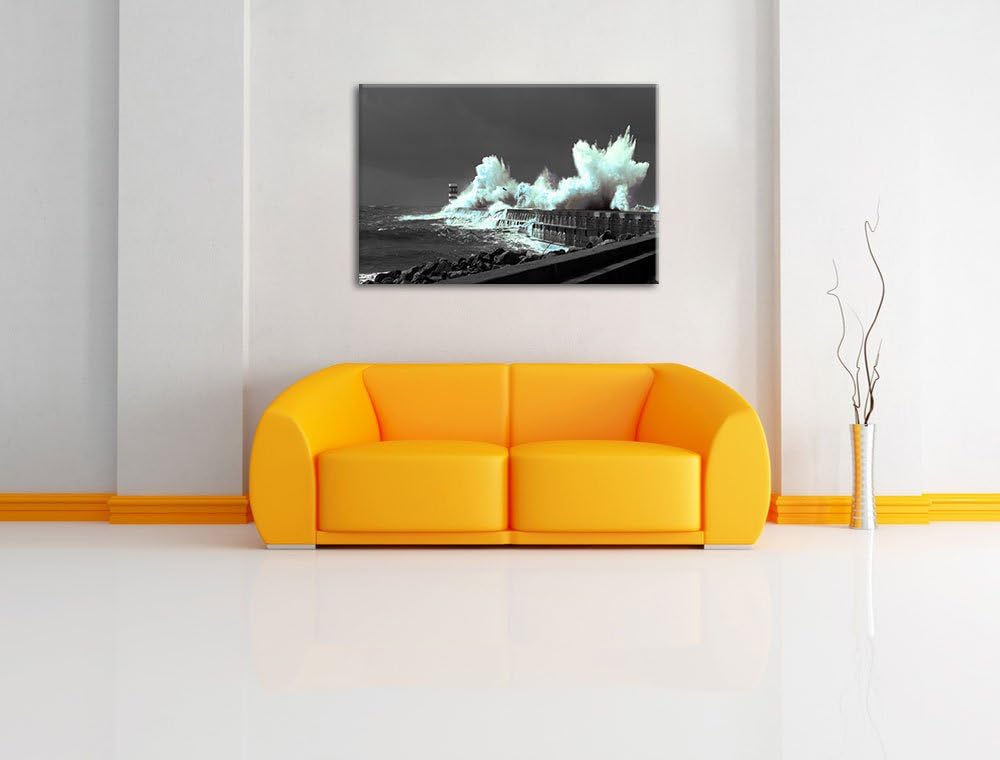 unruhiges Meer und hohe Wellen schwarz/weiss Format: 100x70 auf Leinwand, XXL riesige Bilder fertig