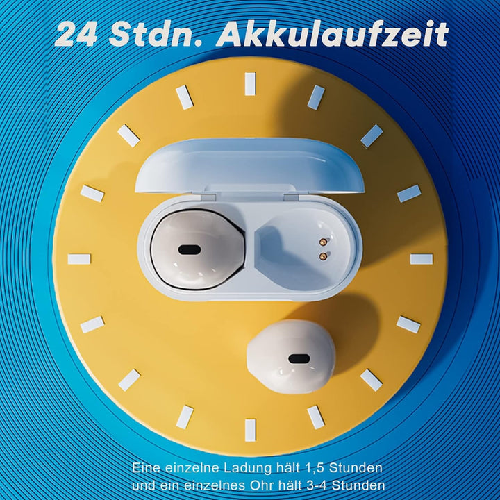 - 【Total 23 Stunden Playzeit】Diese einzelne Spielzeit von Bluetooth-Kopfhörern kann bis zu 4 Stunden verwendet werden, nachdem sie voll aufgeladen sind. Und die schlanke Ladebox kann die Zeit bis zu 23 Stunden verlängern, es bedeutet, dass die